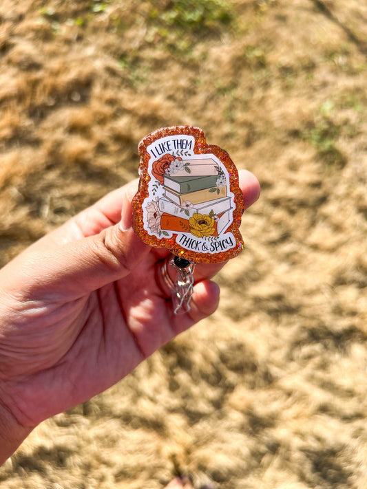 I Like Them Thick and Spicy Badge Reel | Funny Badge Reel | Gift for Book Lover| Sassy Badge Reel | ID Holder | Interchangeable Badge Reel