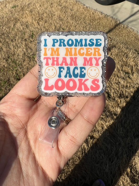 I Promise I'm Nicer Than My Face Looks Badge Reel | Funny Badge Reel | RBF| Sassy Badge Reel | ID Holder | Interchangeable Badge Reel