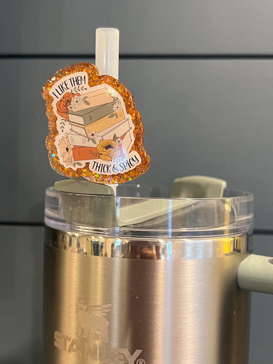 I Like Them Thick and Spicy | Adult Humor Straw Charm | Straw Topper | Funny Tumbler Accessory | Gift for Book Lover | Spicy Book Lover