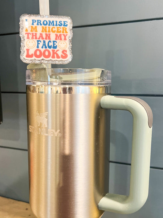 I Promise I'm Nicer Than My Face Looks | Sassy Tumbler Accessories | Funny Straw Charm | Sassy Straw Charm | Sarcastic Decor