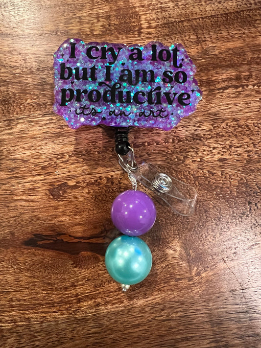 I Cry A Lot But Im So Productive Badge Reel| Type a Personality Badge Reel| ID Holder | Beaded Badge Reel| Interchangeable Badge Reel