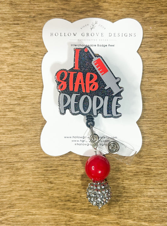 I Stab People Badge Reel| ID Hold | Phlebotomist Beaded Badge Reel| Interchangeable Badge Reel| Funny Badge Reel