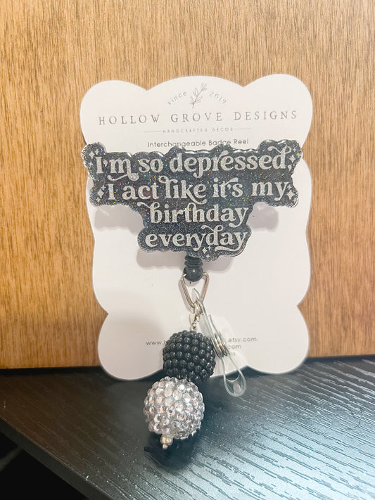I'm So Depressed I Act Like It's My Birthday Everyday Badge Reel| Type a Personality Badge Reel| ID Holder | Interchangeable Badge Reel