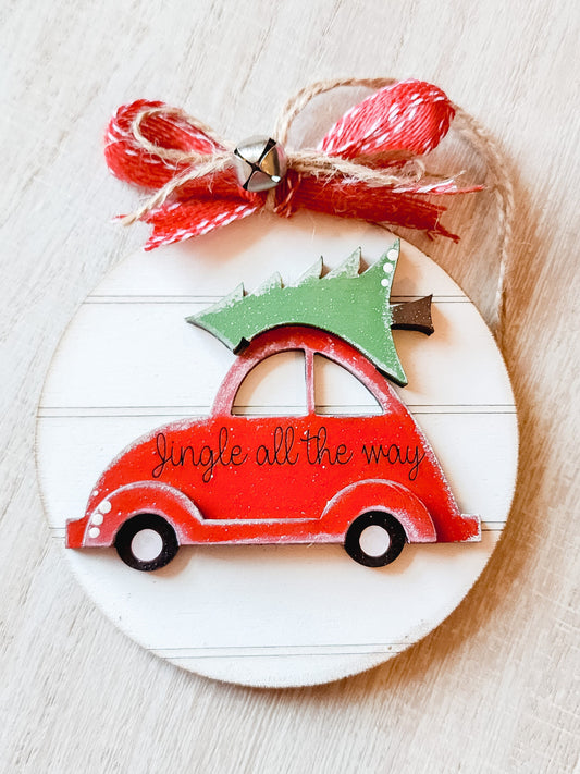 Jingle All The Way Ornament | Christmas Bug Ornament | Red Car Ornament