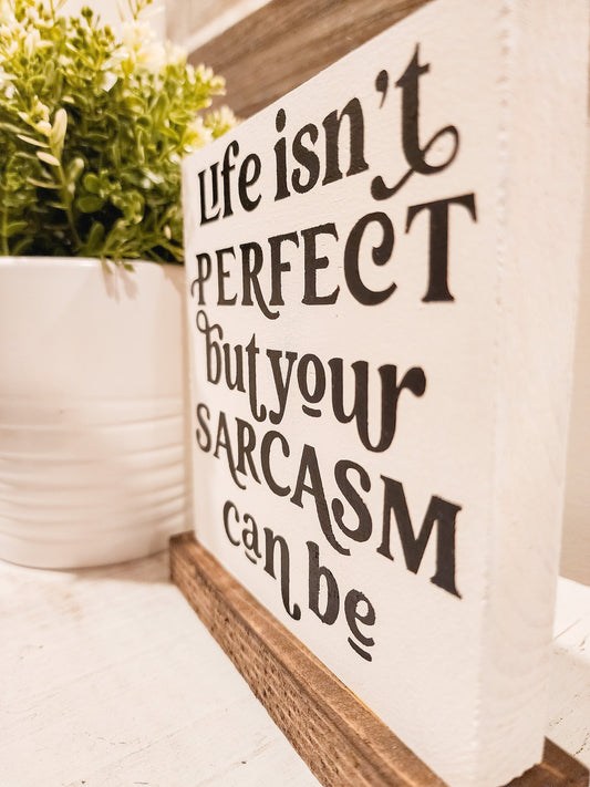 Life Isn't Perfect But Your Sarcasm Can Be | Shelf Sitter Sign | Mini Wood Sign | Sarcasm Sign | Funny Sign | Funny Decor