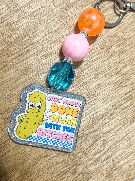 Just About Done Dillin With You B*tches Beaded Keychain| Funny and Sassy Keychain | Dill Pickle Lovers | Beaded Keychain