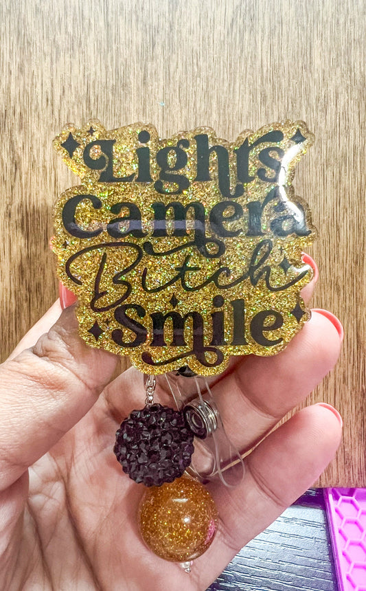 Lights Camera B*tch Smile Badge Reel| Type a Personality Badge Reel| ID Holder | Interchangeable Beaded Badge Reel