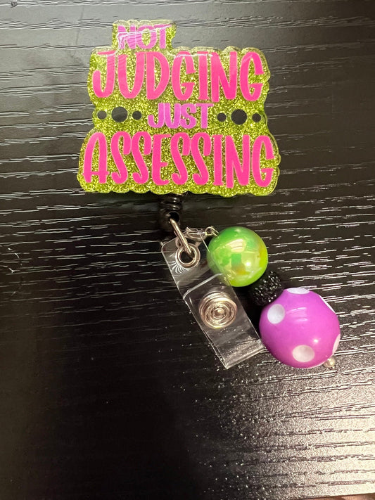 Not Judging Just Assessing Badge Reel| ID Holder | Beaded Badge Reel| Interchangeable Badge Reel| Therapist Badge Reel