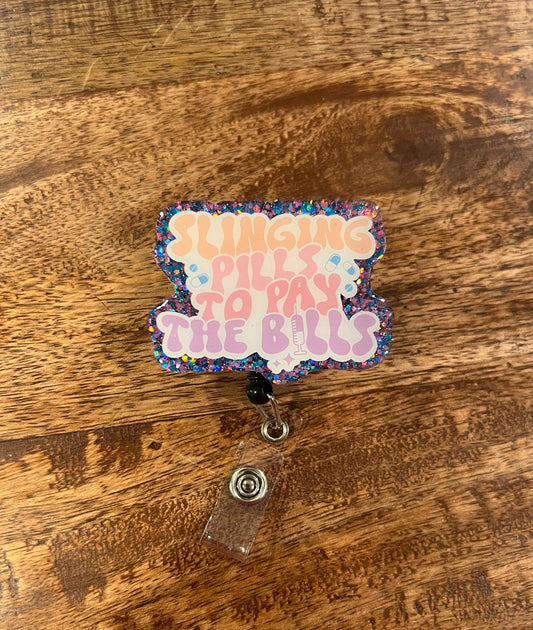 Slinging Pills to Pay the Bills Badge Reel | Funny Badge Reel | Nurse Gift| Sassy Badge Reel | Pharmacist Gift | Interchangeable Badge Reel