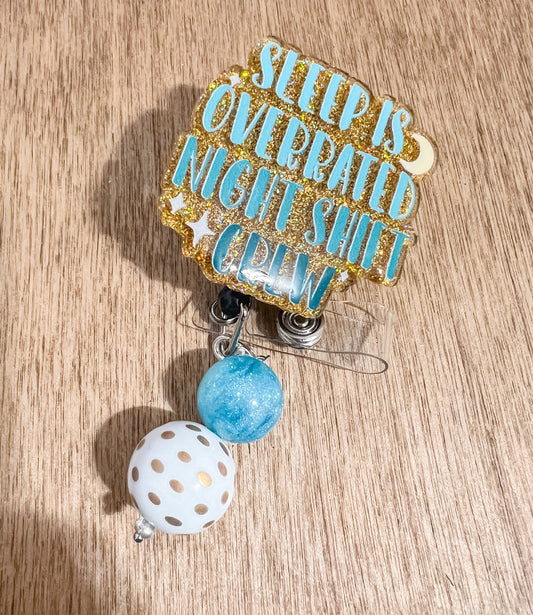 Sleep is Overrated Badge Reel| ID Hold | Beaded Badge Reel| Night Shift Nurse Badge| Night Shift| Interchangeable Badge Reel
