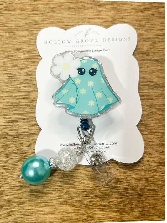 Spring Ghost Badge Reel | Spring Badge Reel Interchangeable | Decorative Badge Reel| ID Holder | Interchangeable Badge Reel