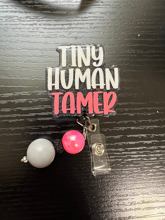 Tiny Human Tamer Beaded Badge Reel | Teacher Appreciation Gift| Teacher Badge Reel| ID Holder | Interchangeable Badge Reel