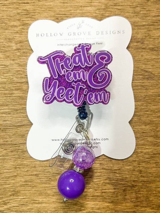 Treat and Yeet Them Badge Reel | Gift for Nurse| Funny Nurse ID Holder | Healthcare Professional Gift| Interchangeable Badge Reel