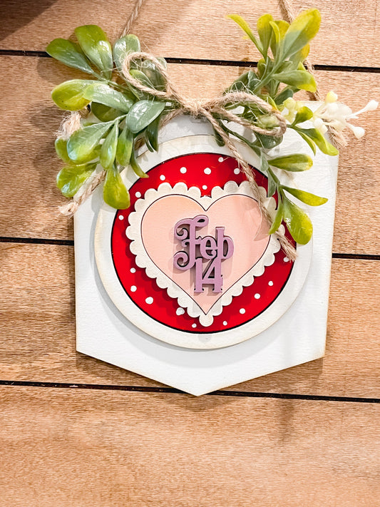 February 14th Heart 3-Inch Insert for Interchangeable Seasonal Sign | Interchangeable Hanging Sign | Seasonal Decor | Valentines DayDecor