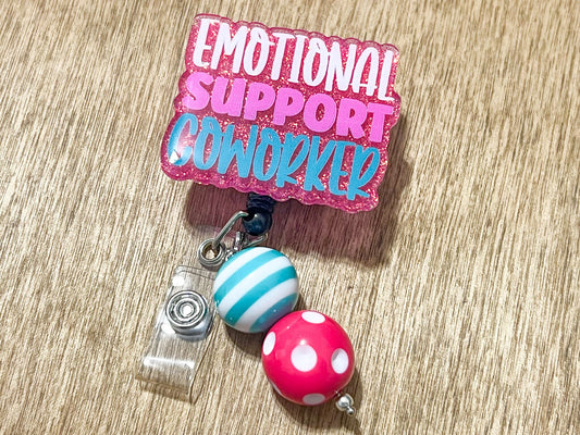 Emotional Support Co-Worker Badge Reel| ID Holder | Beaded Badge Reel| Interchangeable Badge Reel| Therapist Badge Reel | Co-Worker Gift