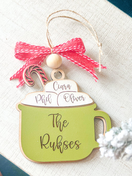 Personalized Hot Cocoa Ornament | Family Name Ornament | Grandparent Ornament | Custom Ornament | Pet Ornament