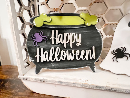 Cauldron Countdown to Halloween | Spooky Tiered Tray Decor | Halloween Shelf Sitter | Countdown to Halloween