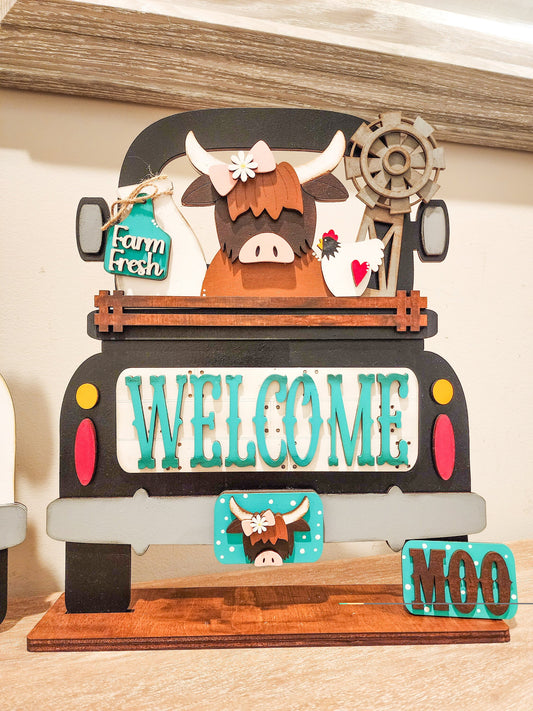 Highland Cow Truck Insert | Truck Door Hanger | Seasonal Decor | Tiered Tray Decor | Farmhouse Truck | Cow Door Hanger