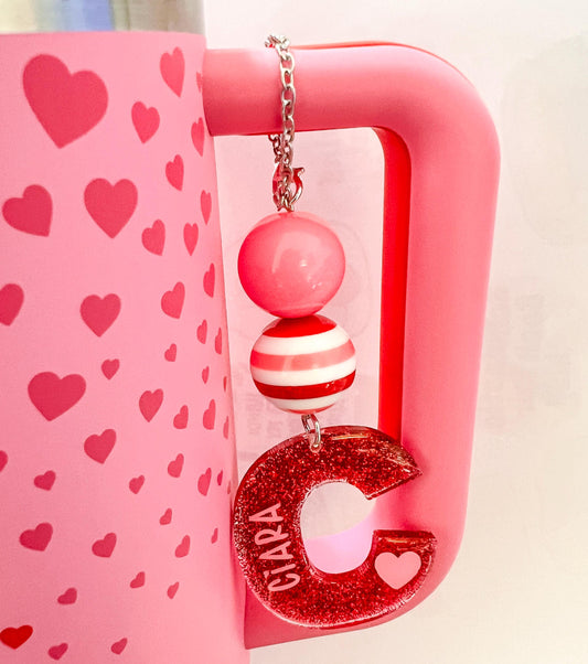 Custom Tumbler Handle Charm and Name Plate Set | Tumbler Accessories | Tumbler Handle Charm | Valentines Accessories